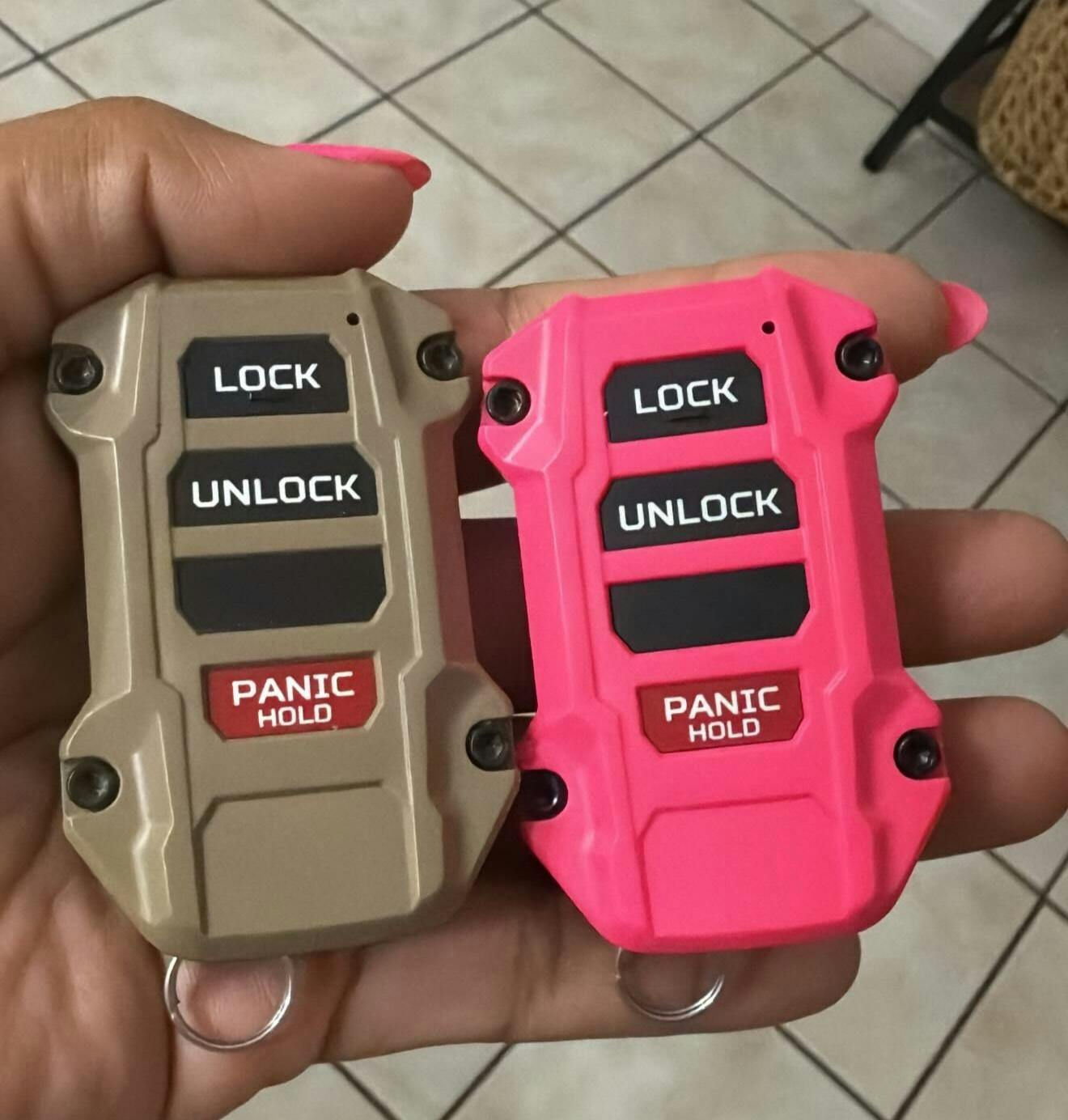 Both black and red button sets include a red and black panic button.