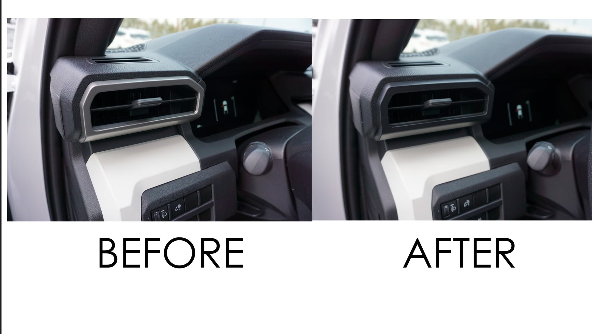 3 piece vent trim overlay covers for the 2024+ Tacoma and 2025+ 4Runner.  Injection molded of high strength and impact resistant ABS plastic.
